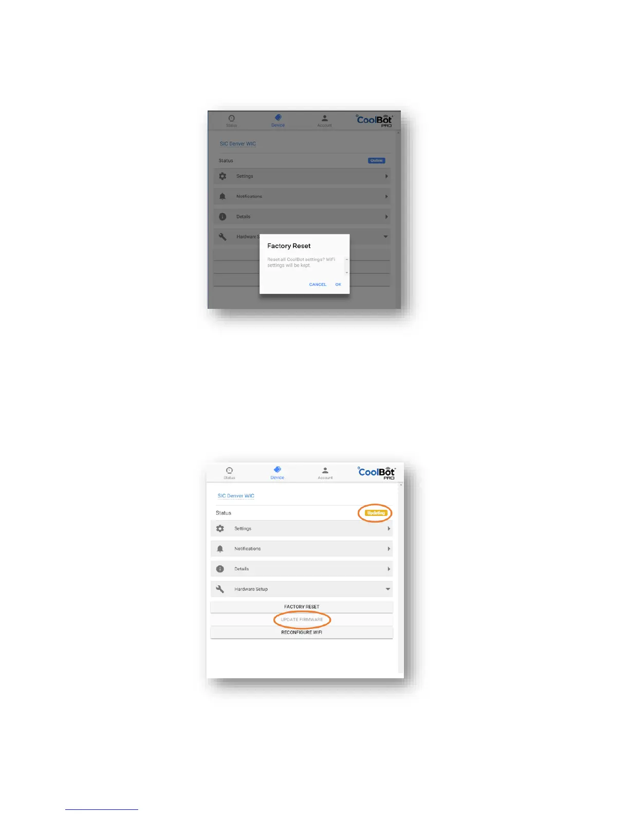 2. Update Firmware – This option downloads the latest Firmware version to your CoolBot JUMPER.