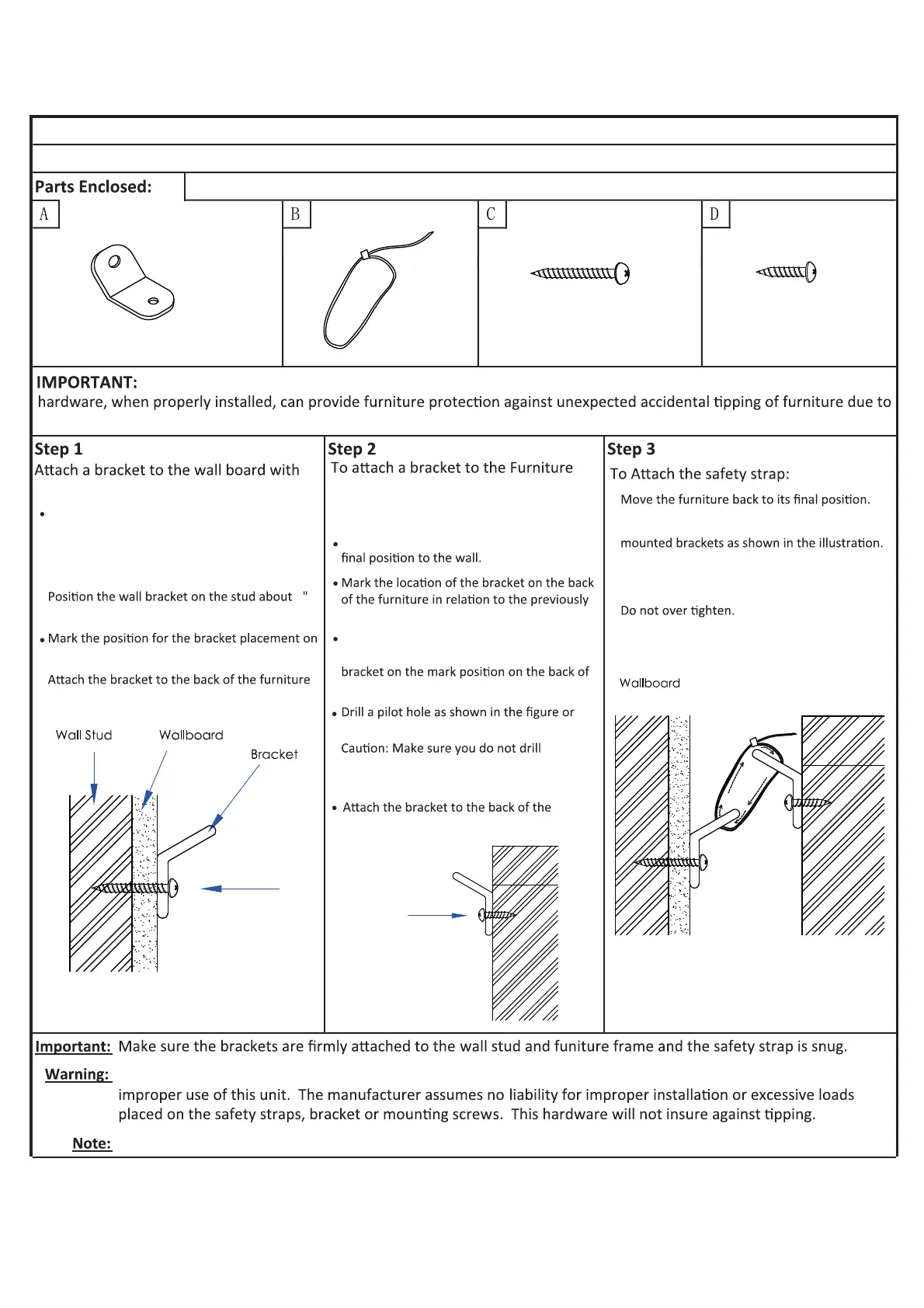 For taller or heavier pieces of furniture, two safety brackets my be installed.