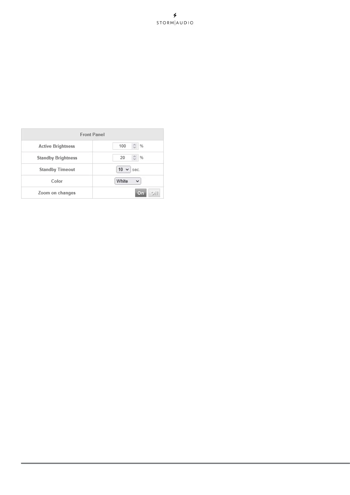 • Standby Brightness: Brightness of the screen