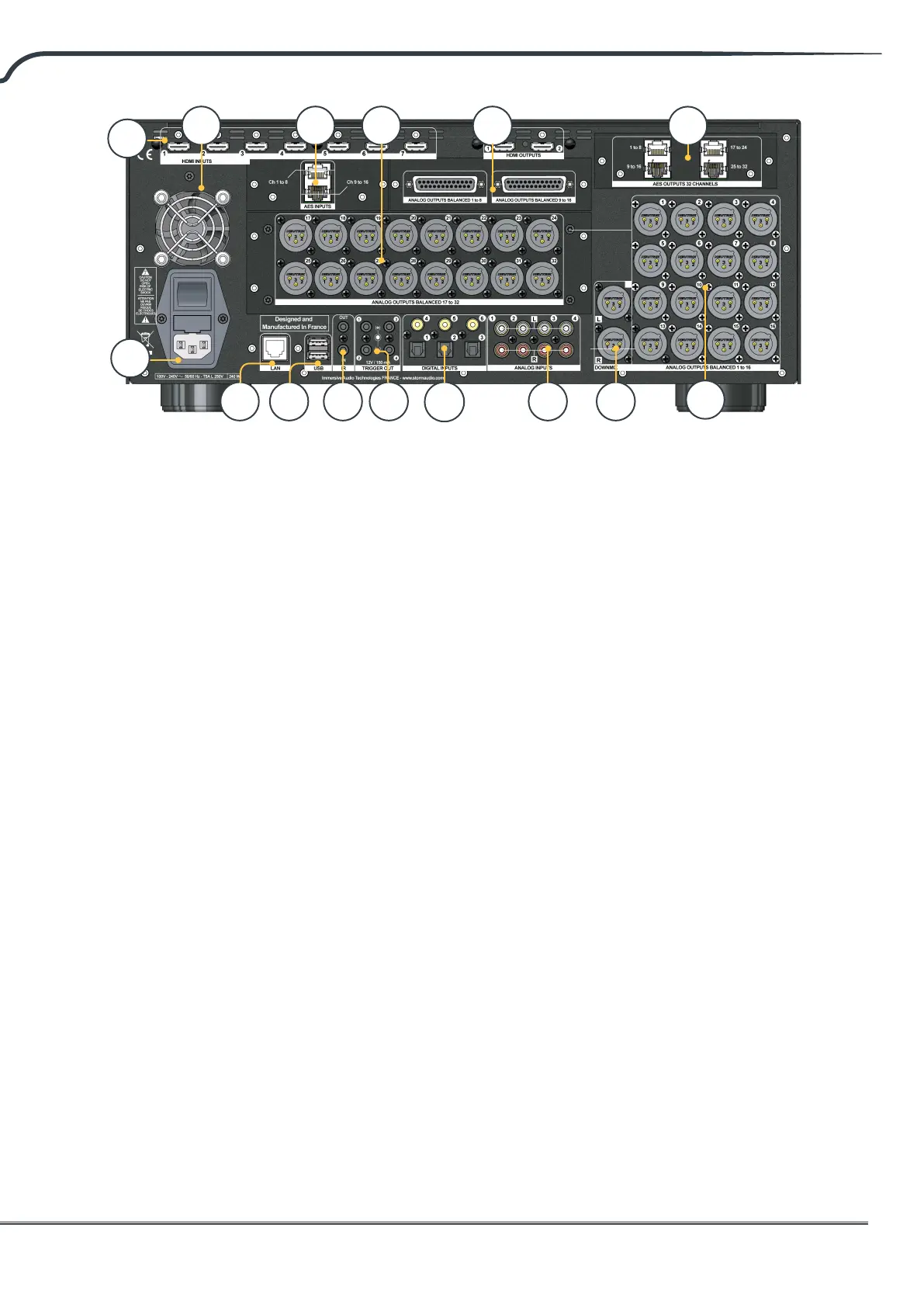 Sixteen XLR analog audio outputs are provided