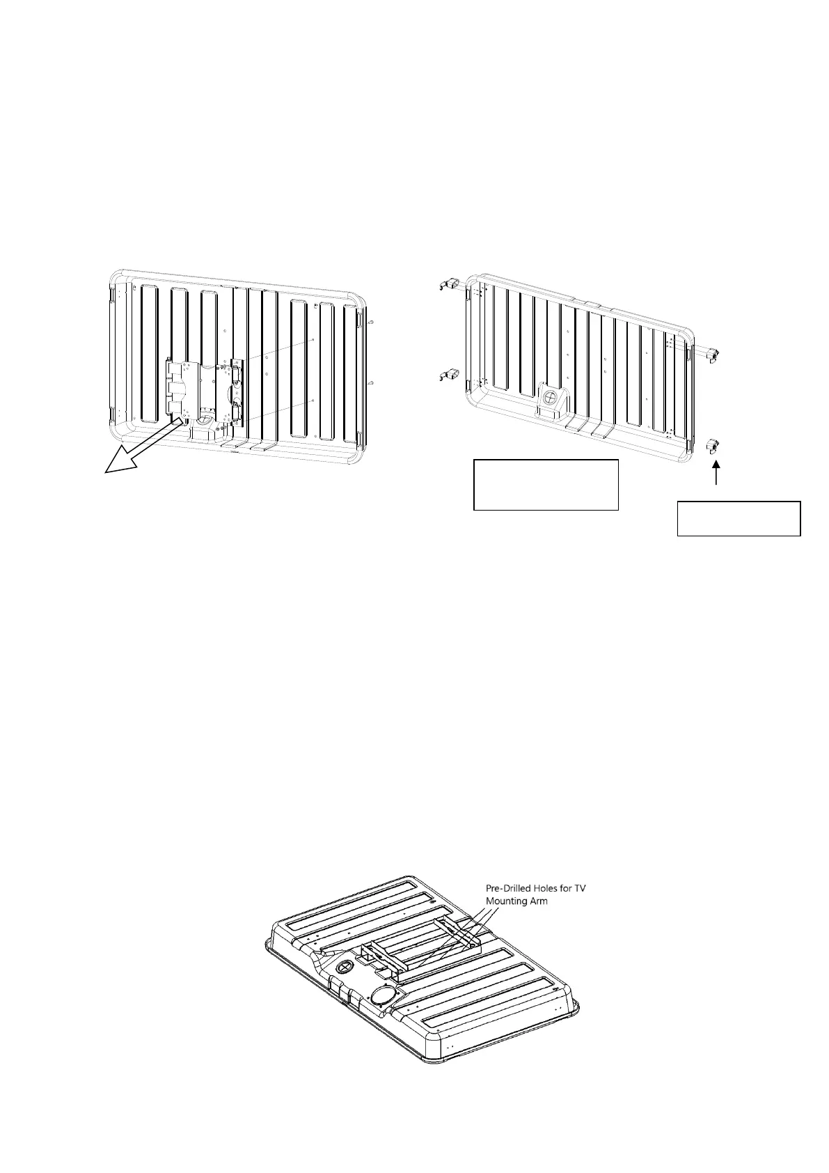 Remove the TV bracket from the Storm Shell Back by unscrewing the two shipping screws