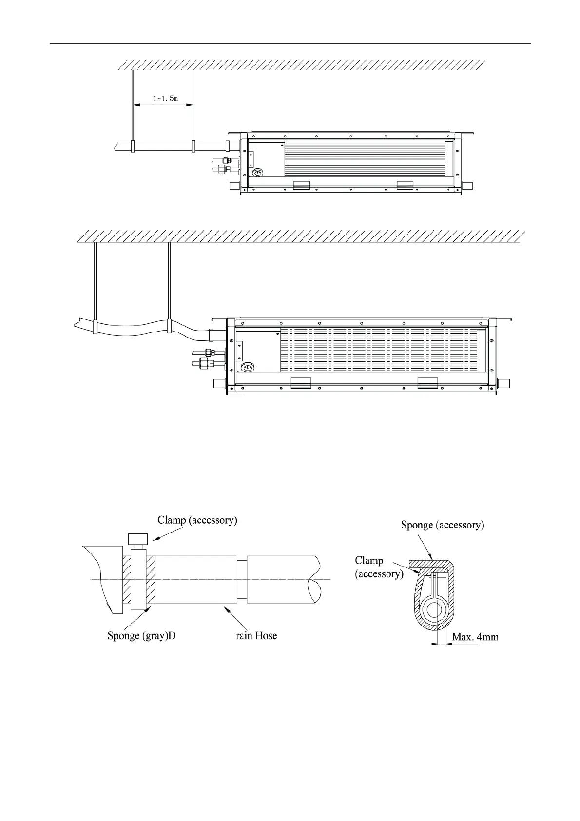 e. Insert the drain hose into the drain hole and tighten it with clamps.