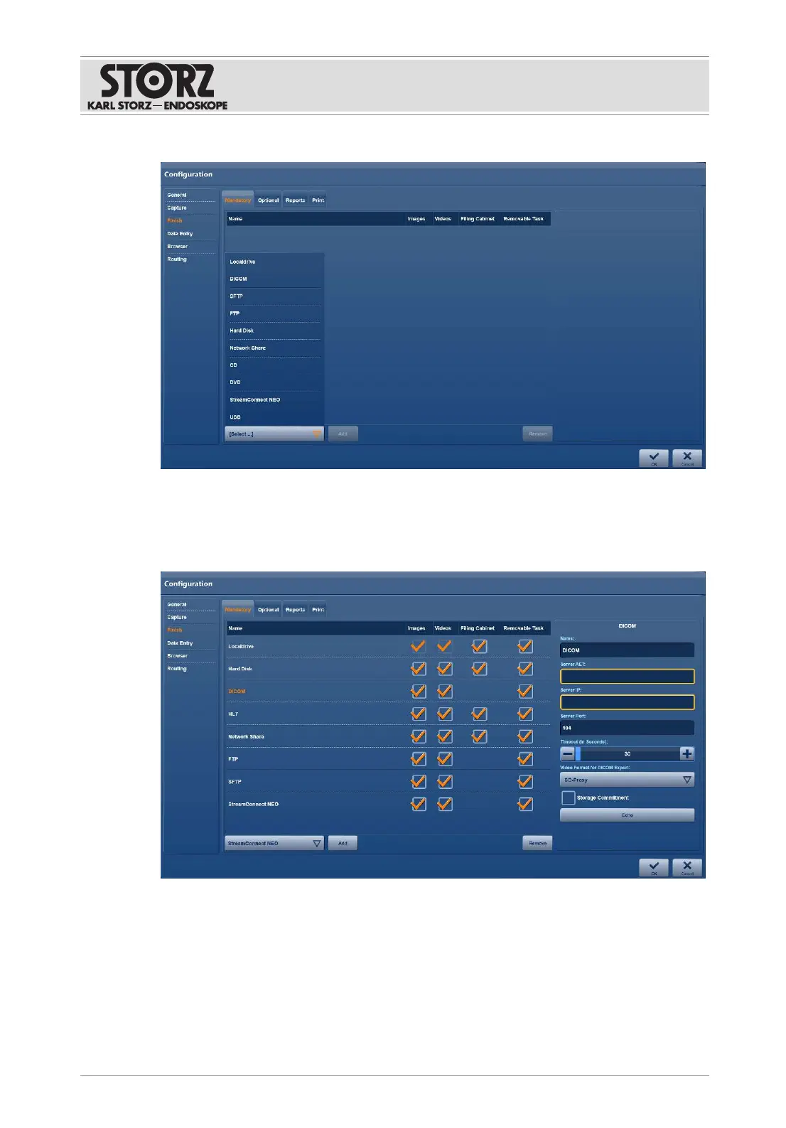 via the network, the accesses for this are also to be stated, e.g., DICOM or SFTP.