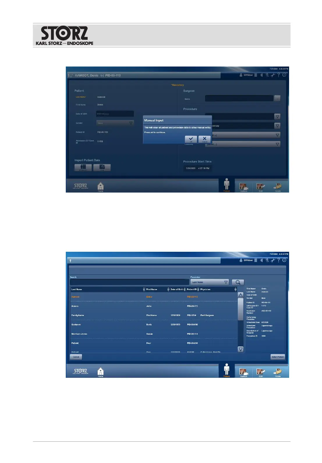 If the system is connected to a DICOM server, patient data can be selected and loaded from