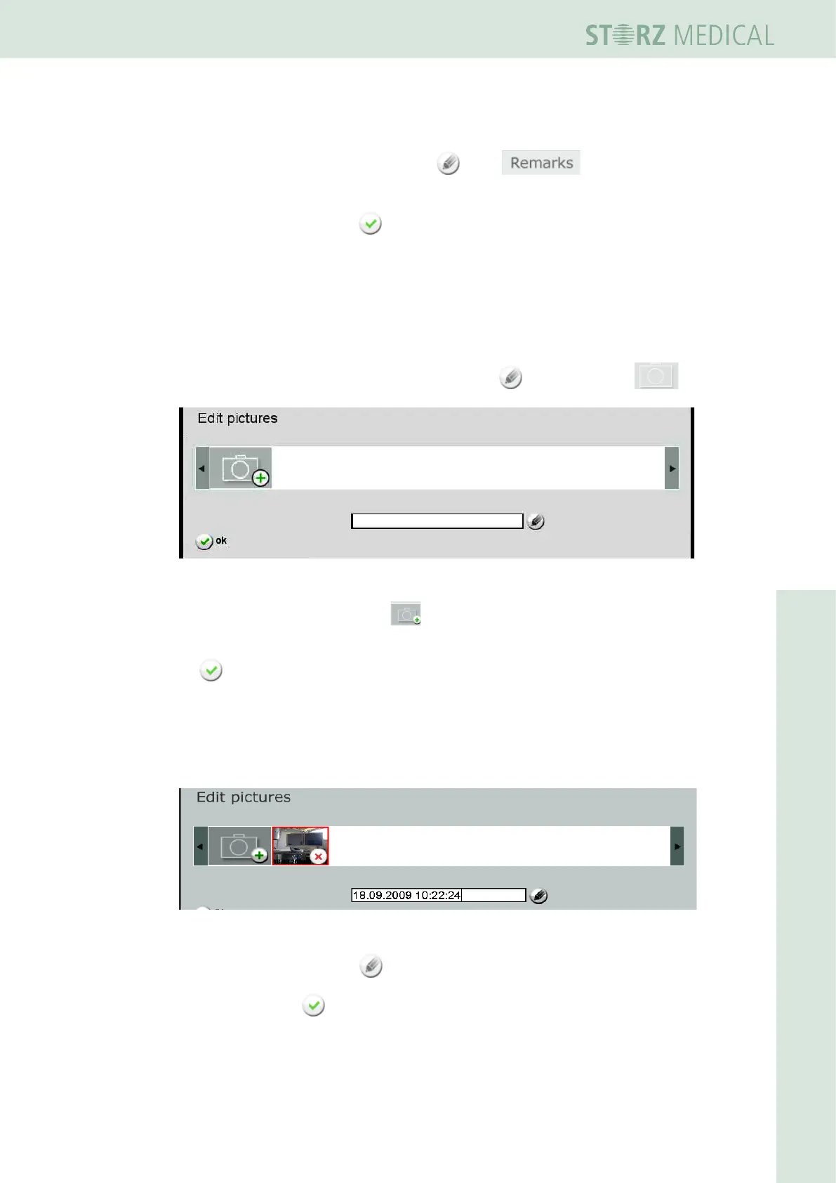 • To add treatment pictures to the indication, press in the picture line .