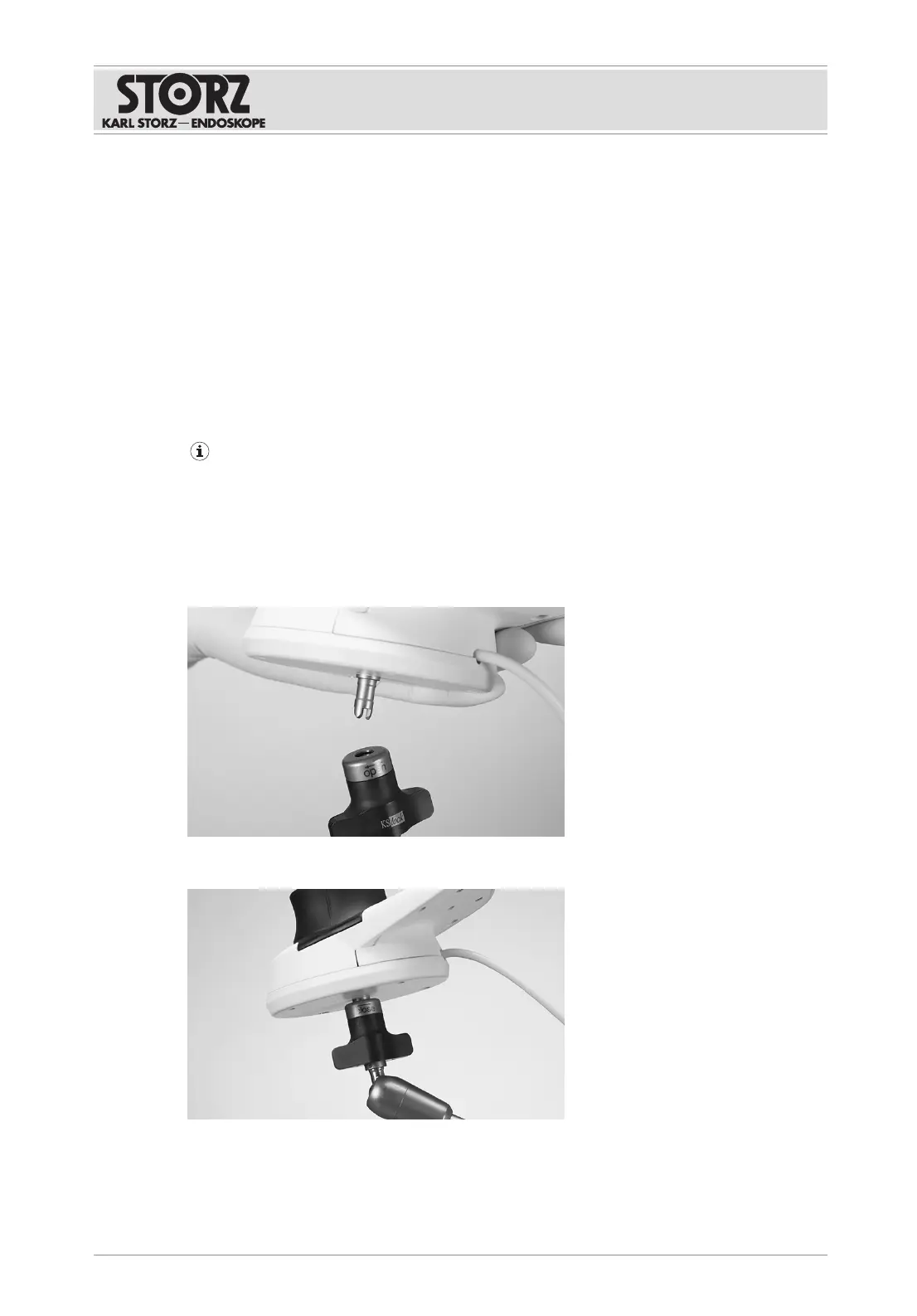 The product is attached to the operating table using a KARLSTORZ articulated stand.