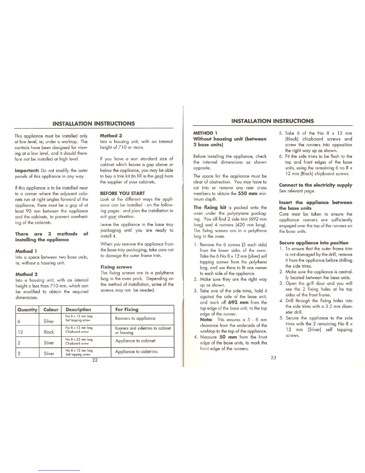 STOVES 720EF - Installation Instruction; Before You Start; Fixing Screws; Secure Appliance into Position