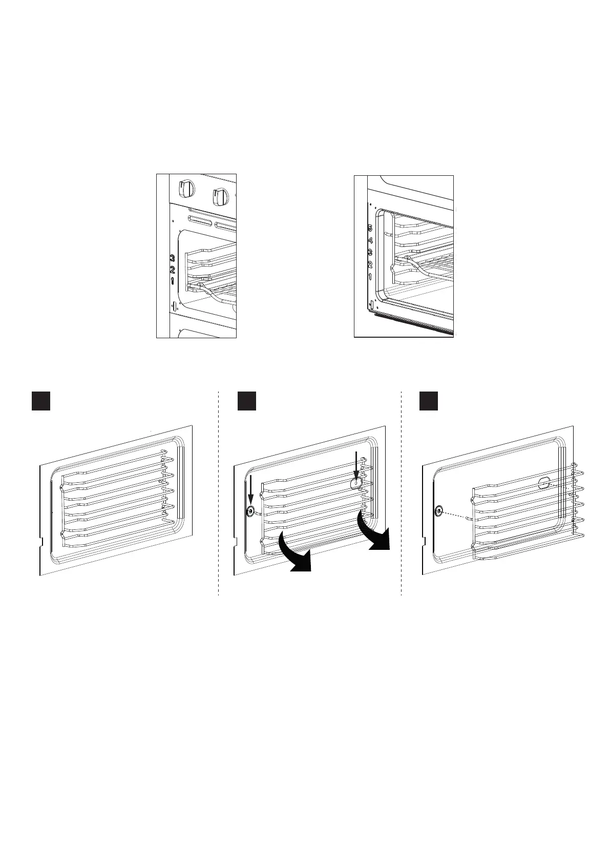 To ensure the oven shelves operate safely, correct placement of the shelves between the side rails is