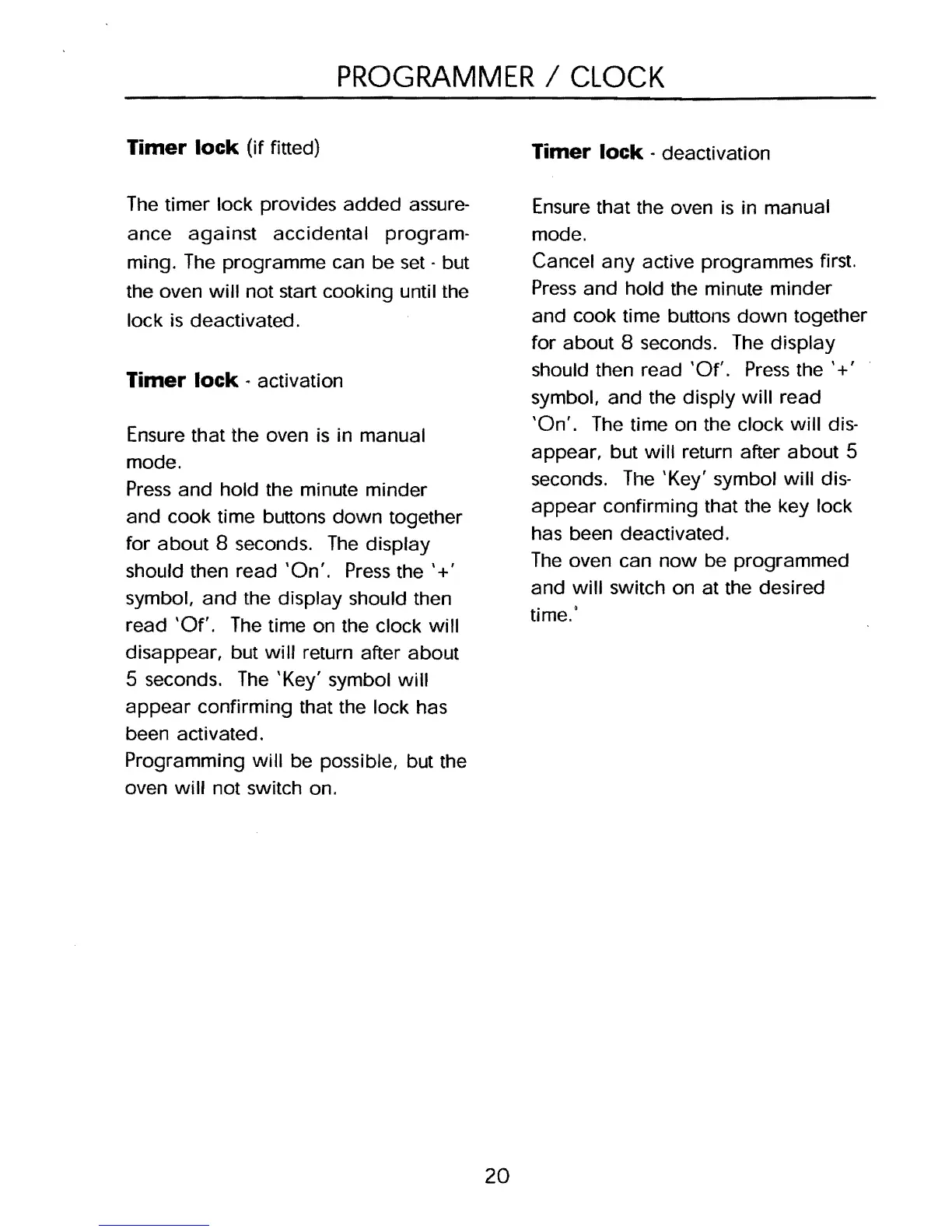 Timer lock (if fitted)