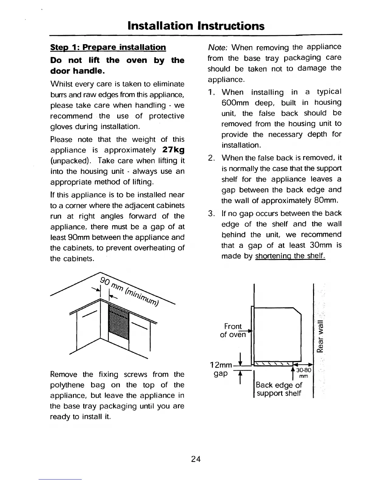 least 90mm between the appliance and