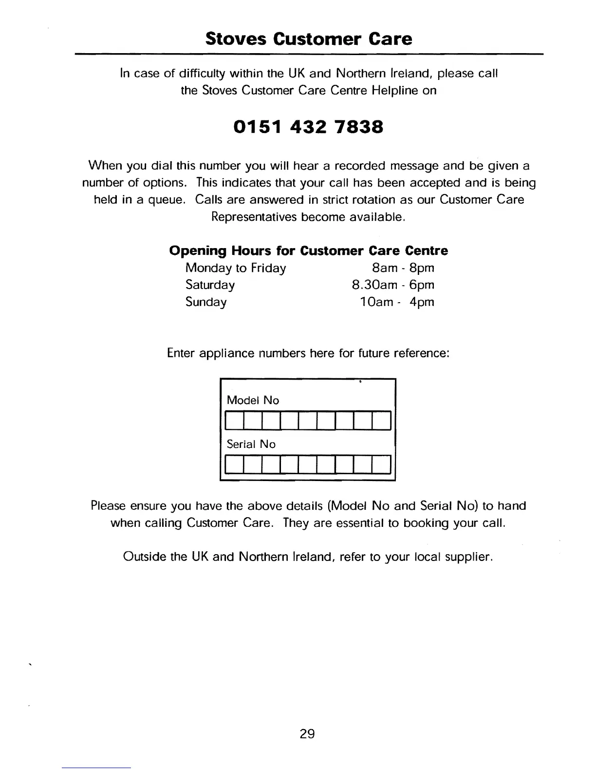 held in a queue. Calls are answered in strict rotation as our Customer Care
