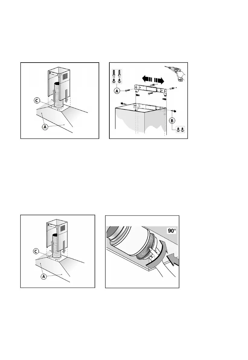 Successivamente fissarla al soffitto utilizzando le viti A (Fig. 4) in modo tale che sia in linea con la cappa e