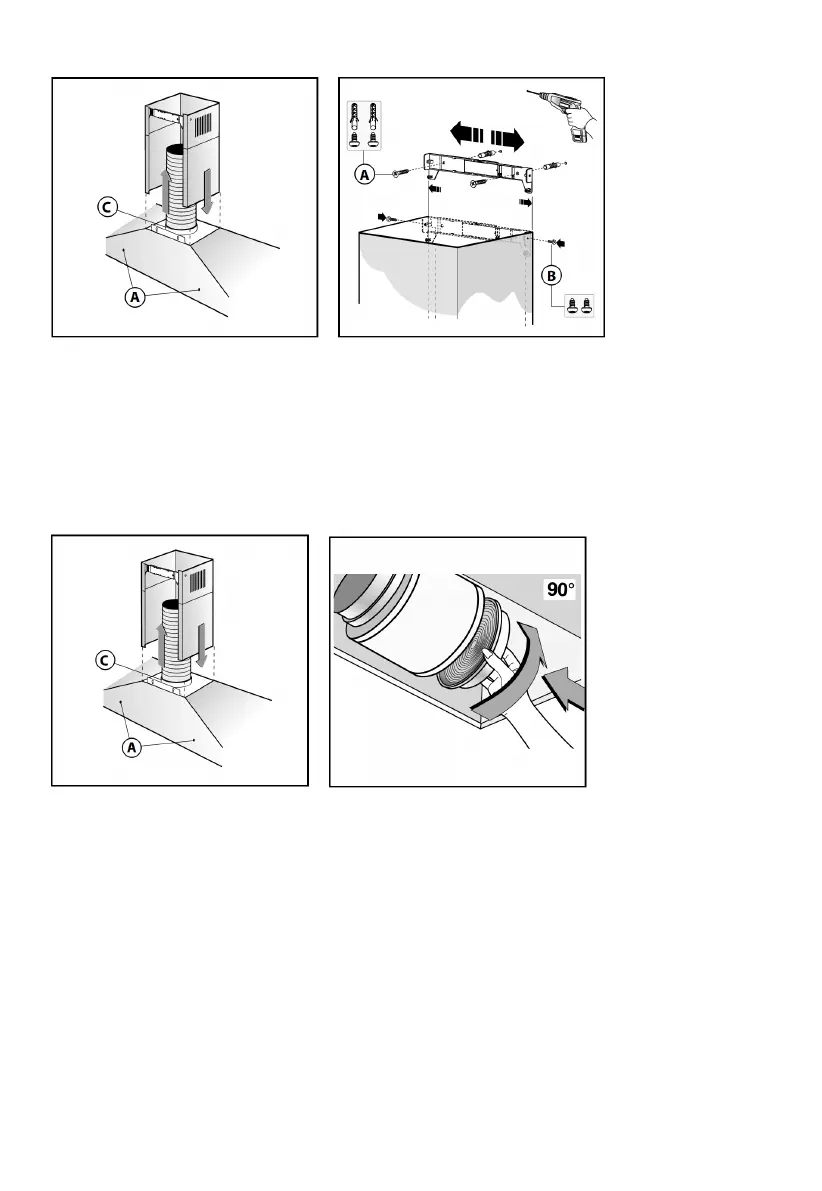 varžtais prisukite prie lubų A (4 pav.) taip, kad būtų vienoje linijoje su dangčiu ir atitinkama distancija nuo lubų,