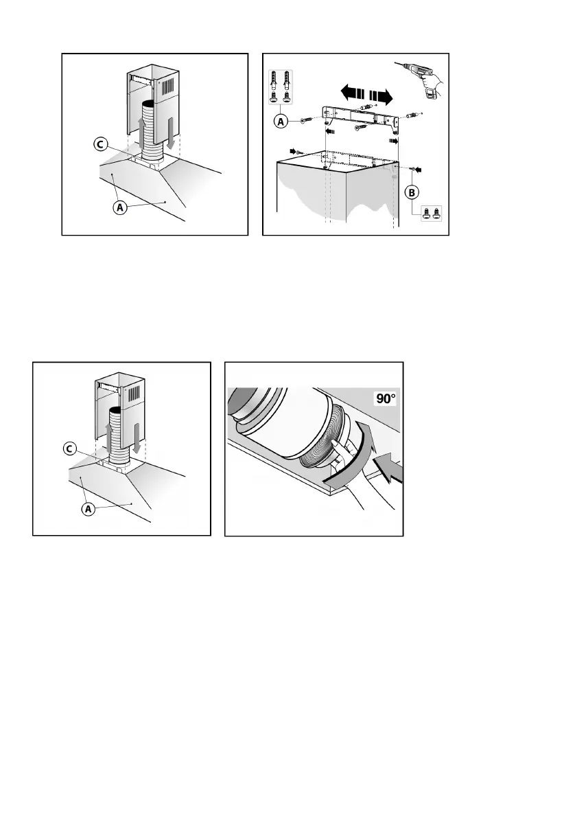 Instalirajte napu dva dimnjaka kao što je opisano u točki za ugradnju nape u kanalnoj verziji . Za sastavljanje
