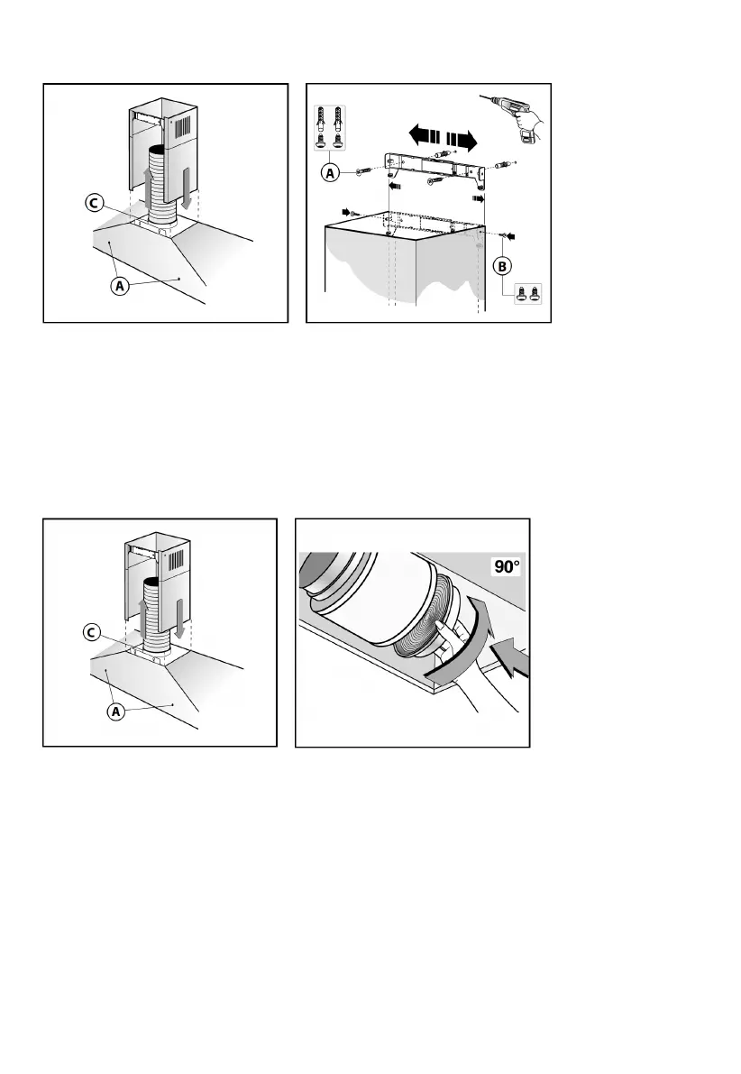 Nainstalujte odsavač par a dva vývody, jak je uvedeno v odstavci pro instalaci odsavače par ve verzi s odtahem.