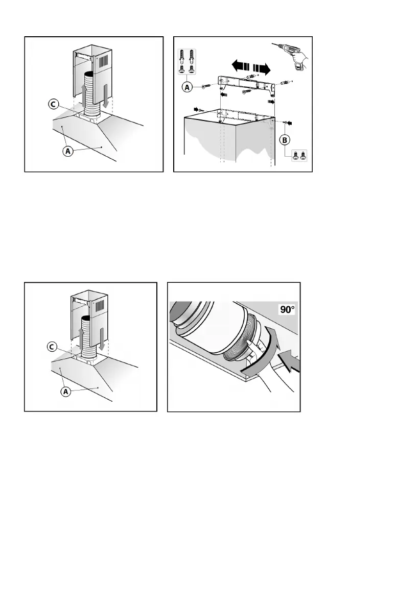 the width of the support bracket of the upper flue (Fig.4). Then fix it to the ceiling using the screws A (Fig.4) in