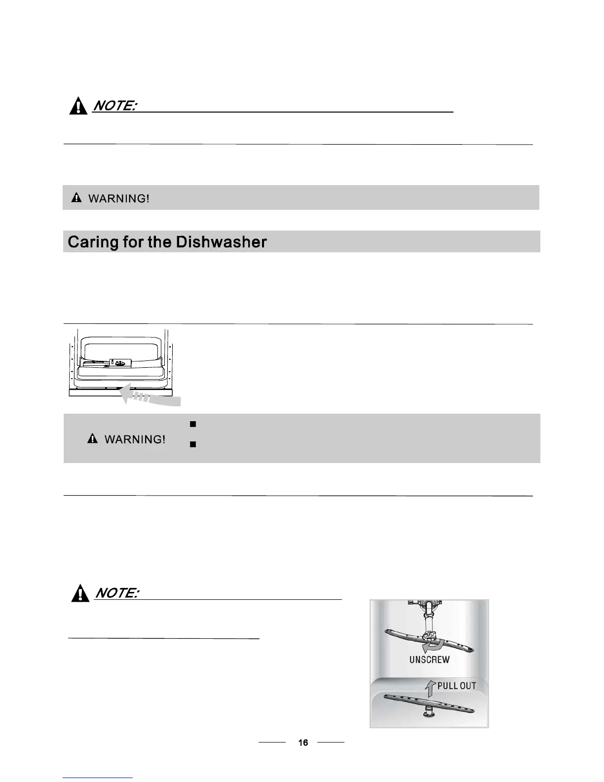 Never u se s harp obj ects, sco ur ing pa ds o r h ar sh c lea ners on a ny part o f the dis hw asher.