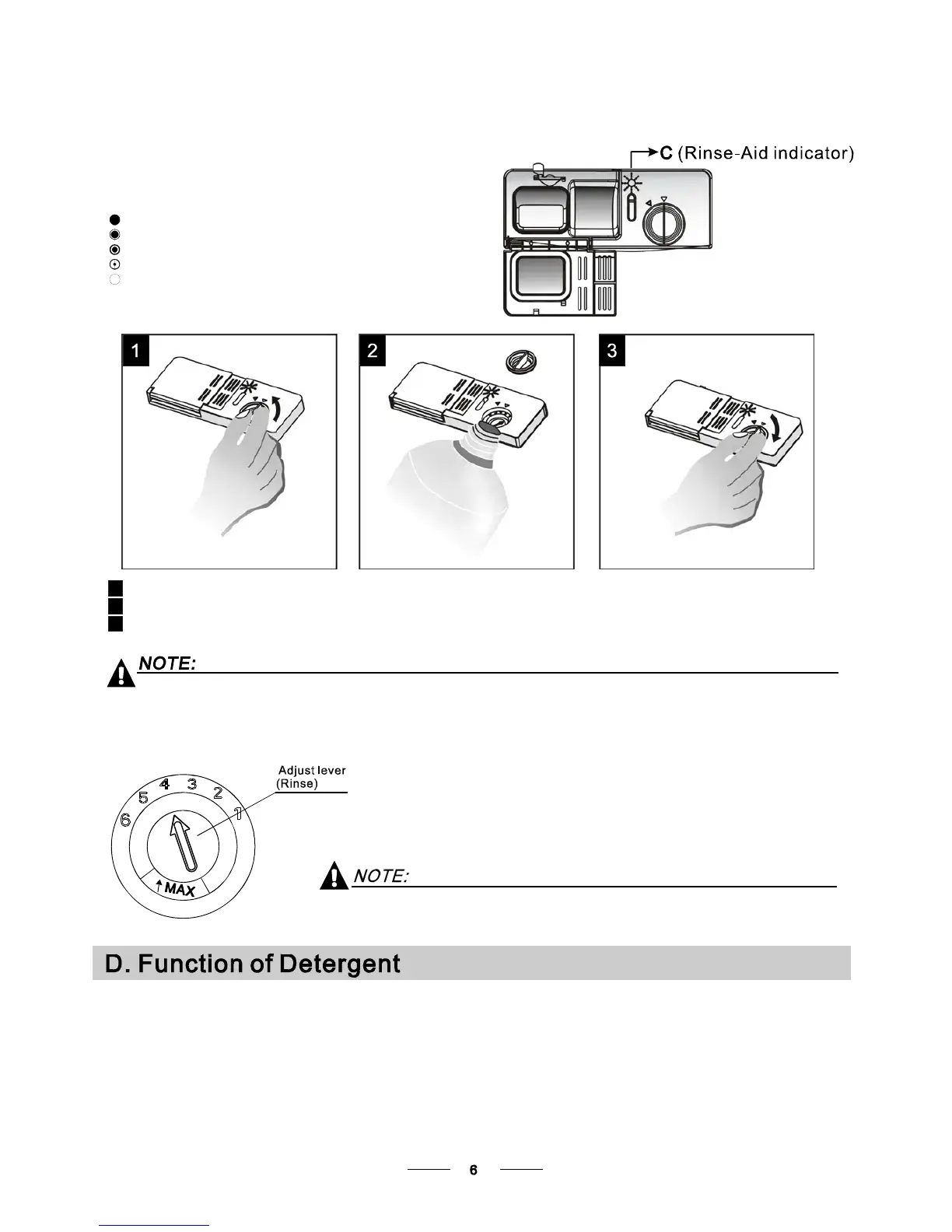Use onl y d ete rgent s peci fi cal ly m ad e for use i n di shwa she rs. Keep your deter gent fresh