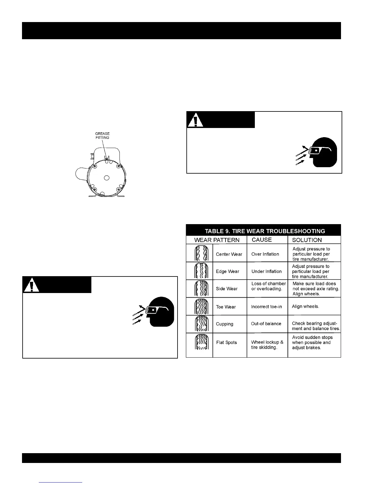 Table 9 (Tire Wear Troubleshooting) will help pinpoint the