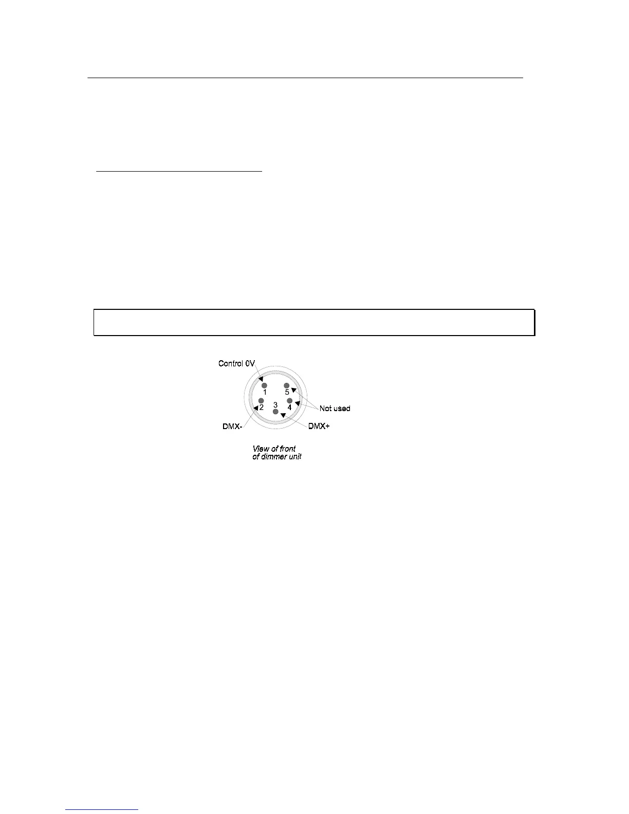 The control input is via a five-pin male XLR type connector. Pin connections are