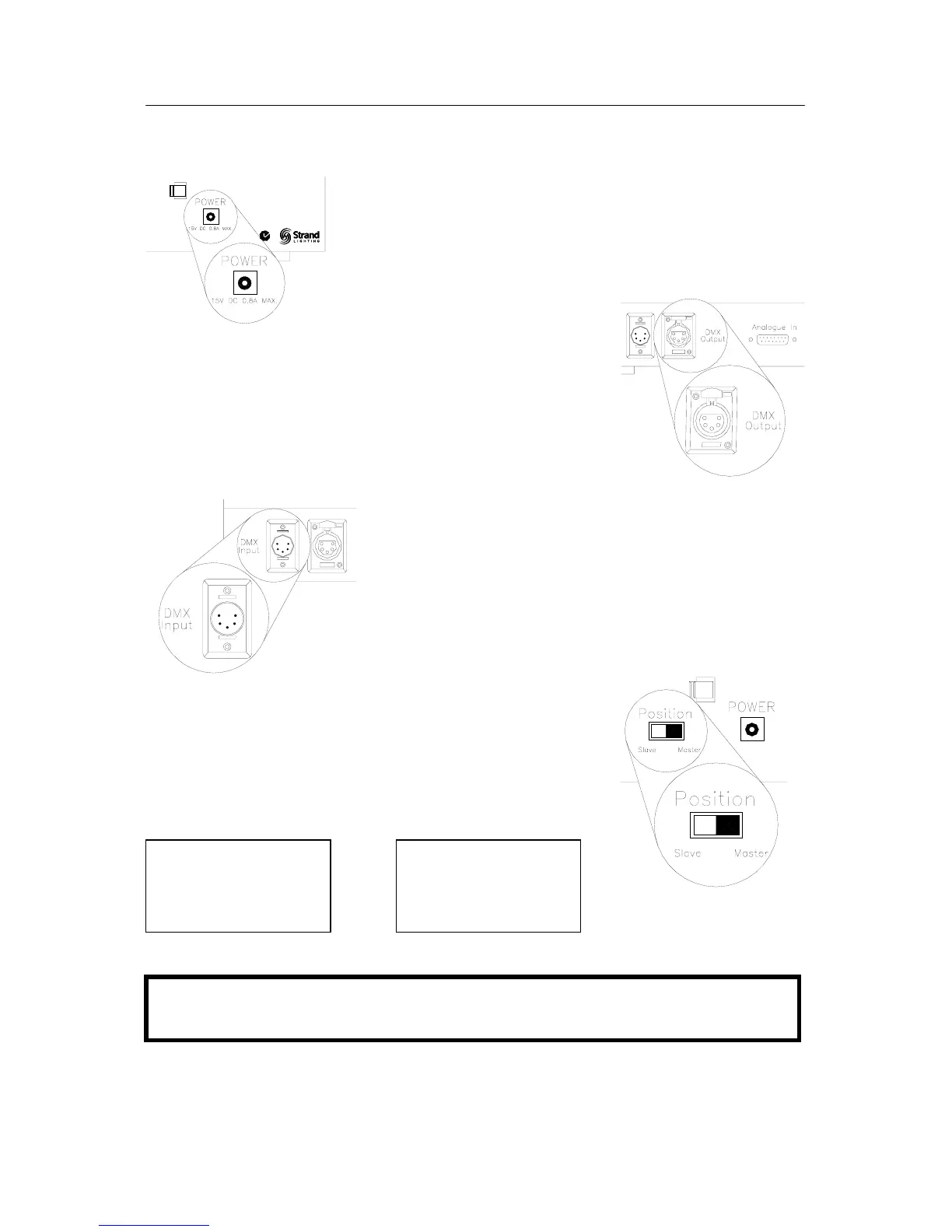 Plug the DMX512 cable from the dimmer rack into the DMX512