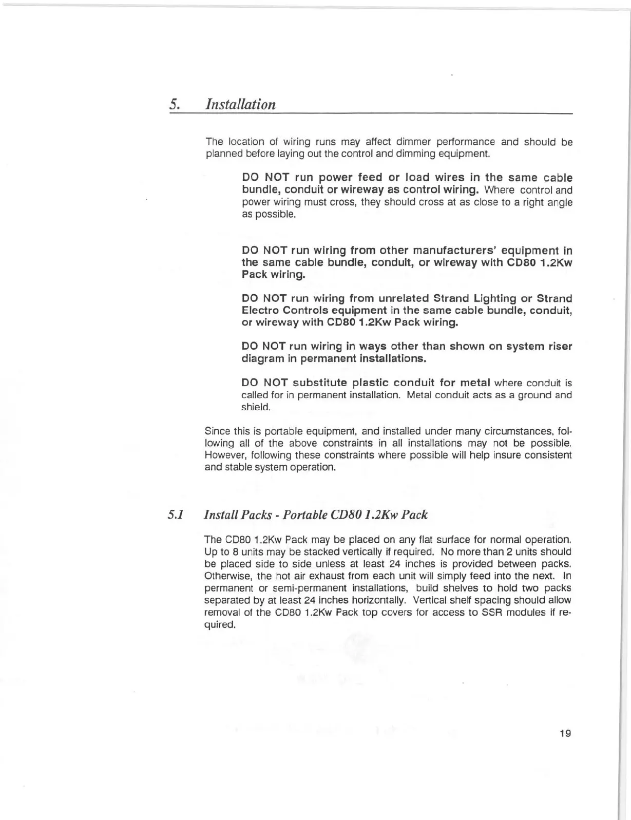 DO NOT run wiring from unrelated Strand Lighting or Strand