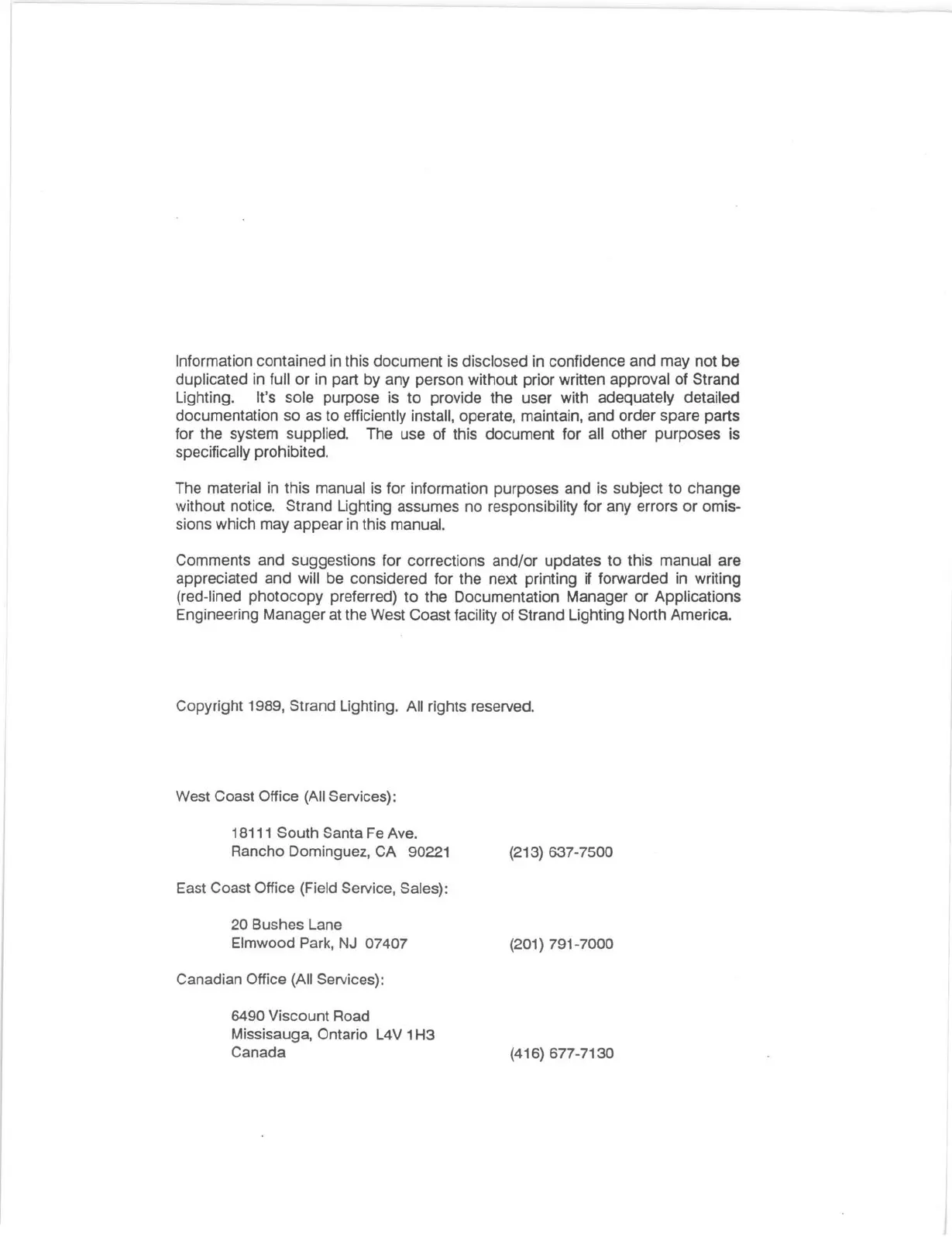 without notice. Strand Lighting assumes no responsibility for any errors or omis-