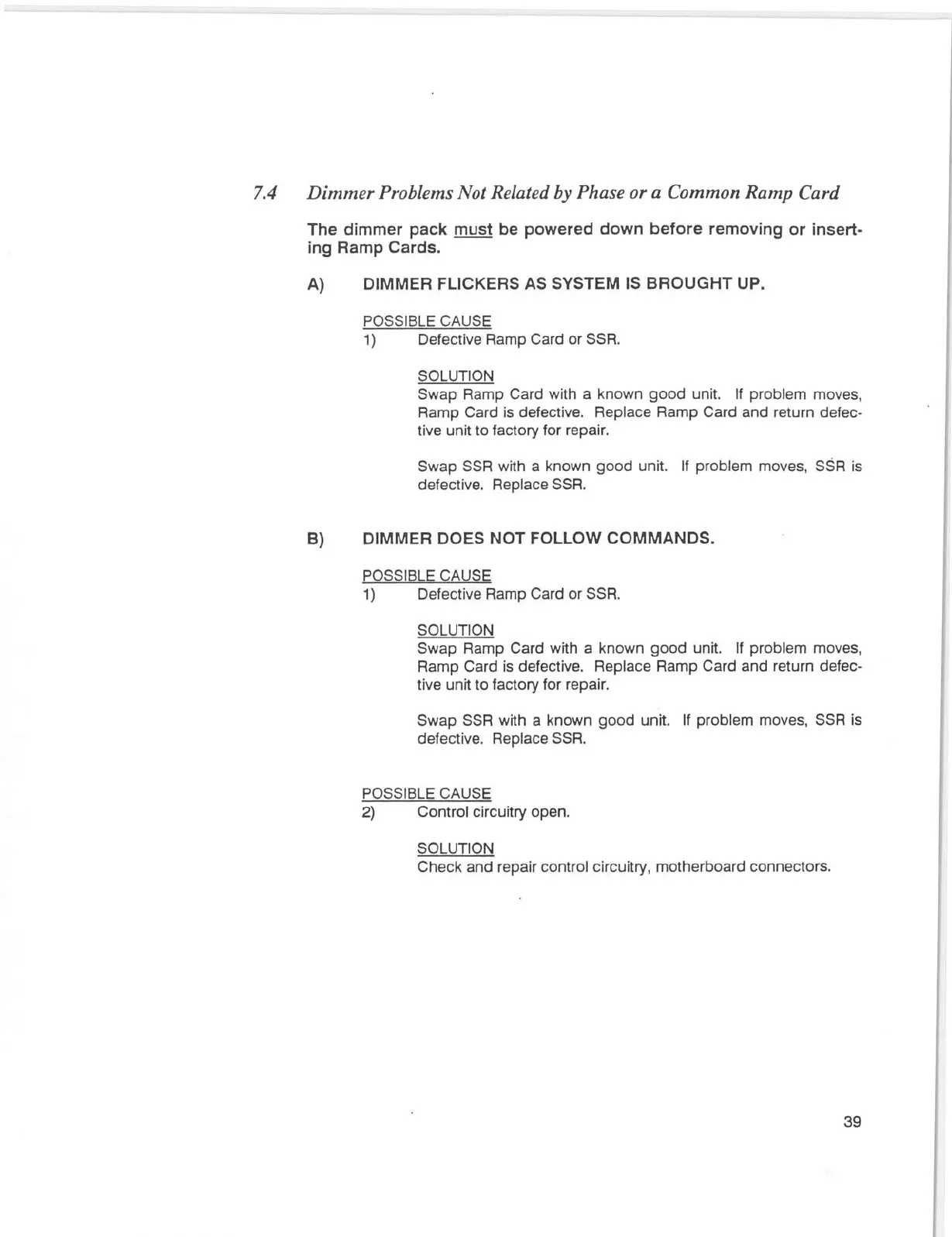 7.4 Dimmer Problems Not Related by Phase or a Common Ramp Card