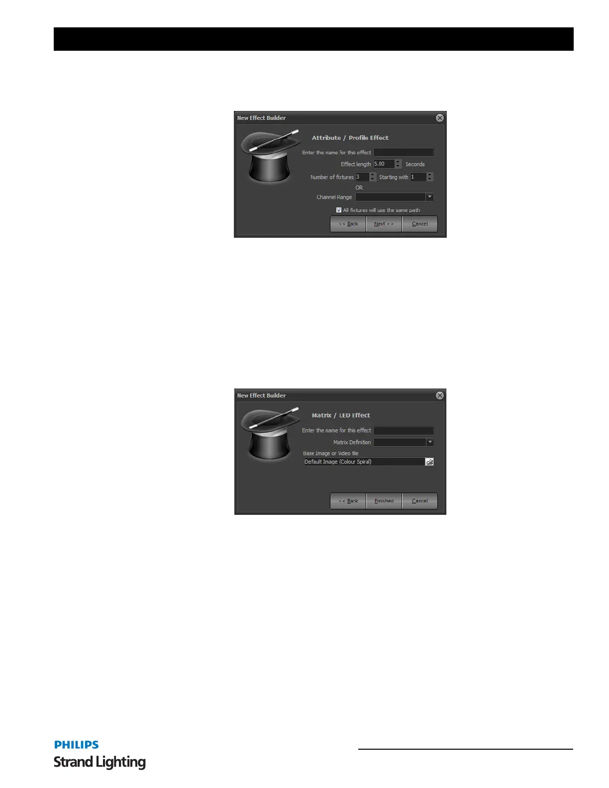 When you are happy with the settings click on the "next" button to move to page 2 of the effect wizard. Here you can