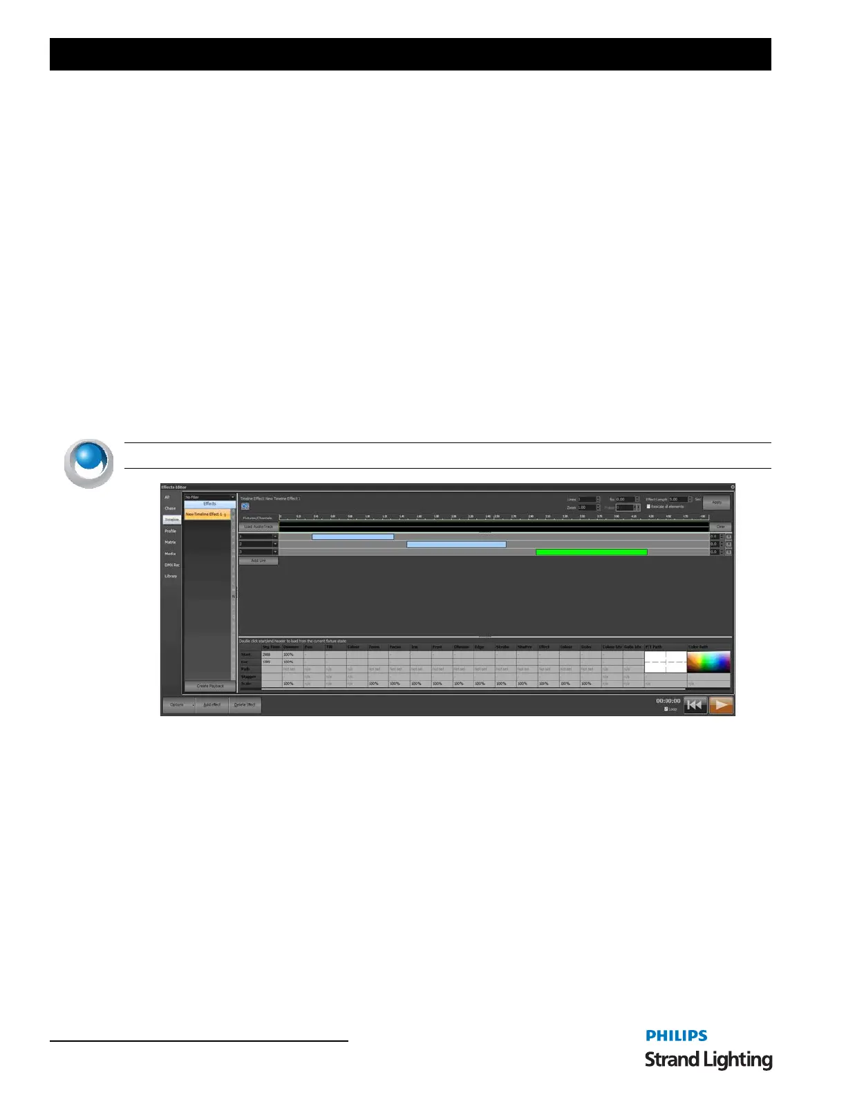 Timeline effects are viewed in NEO as a Fixture vs. Time graph. Along the top of the effect view, you will see a time