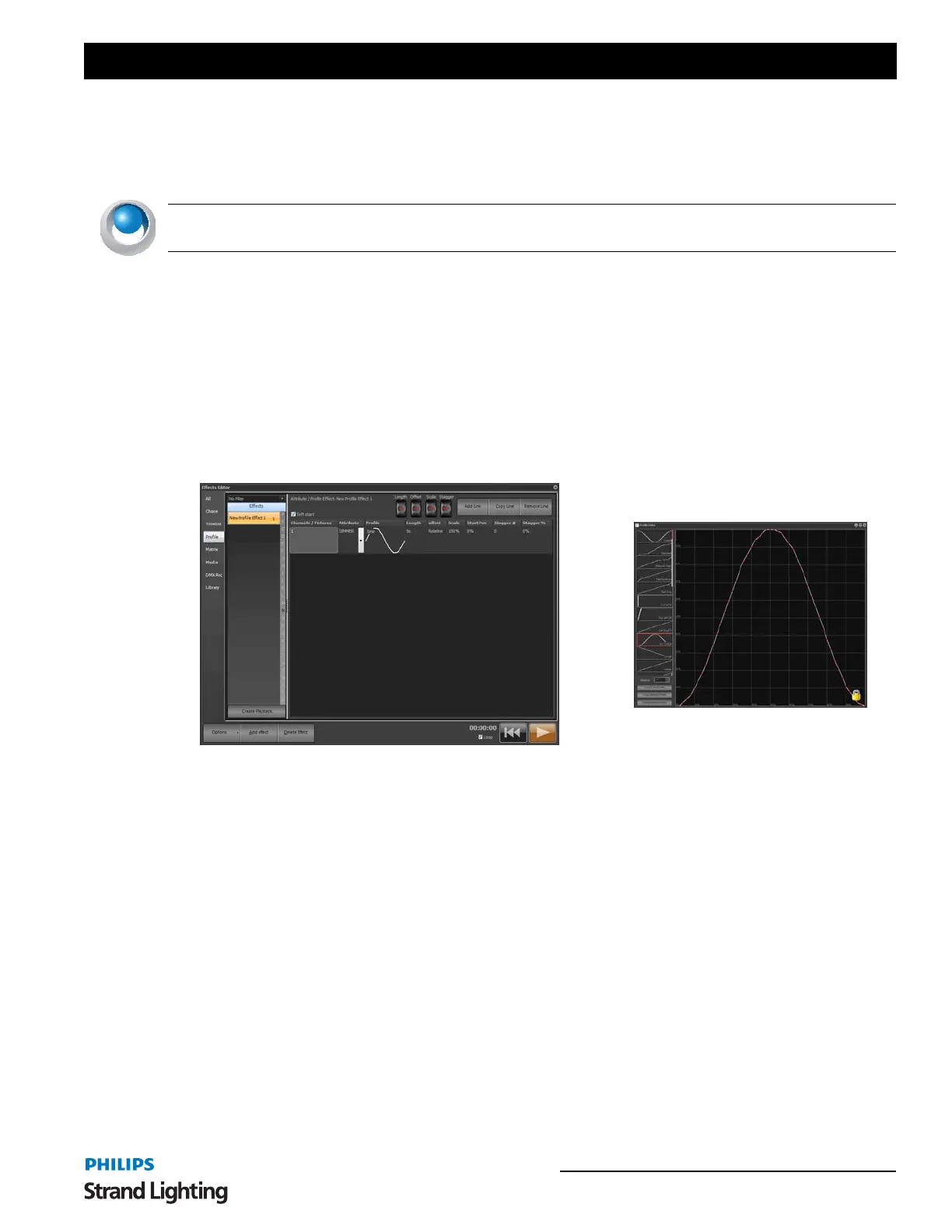 Create this type of effect to assign a time vs. profile path to specific attributes of fixtures. When the effect runs the