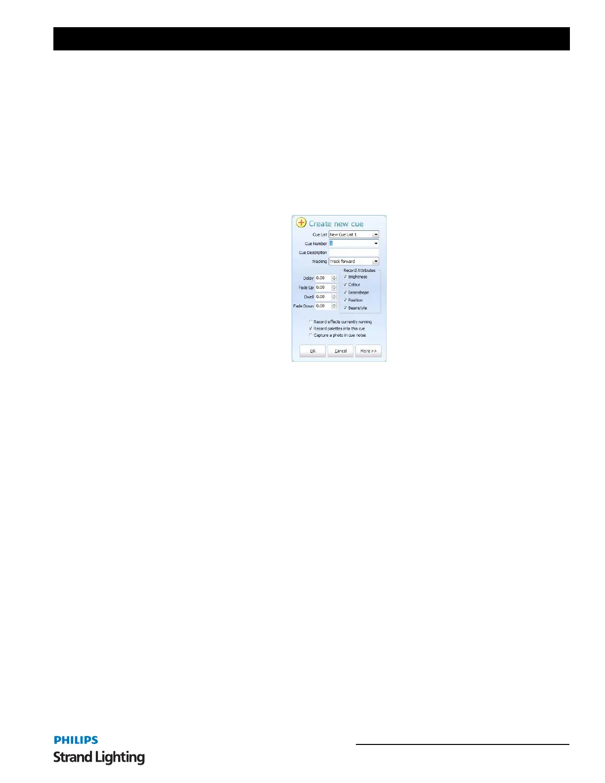 installed then this will be the only cue list) and set the cue number to the next available cue. Press the "OK" button to