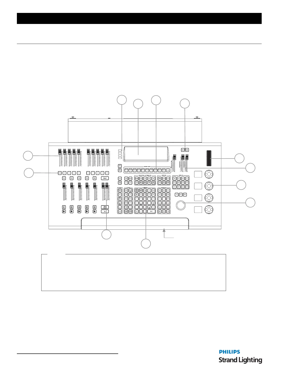 The programming section of the desk provides direct access to intensity channels, channel attributes, playback