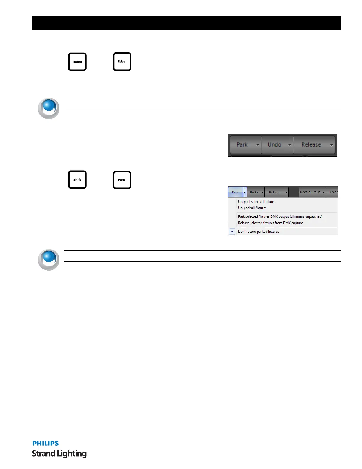Park - assign the current fixture value to a locked level. This