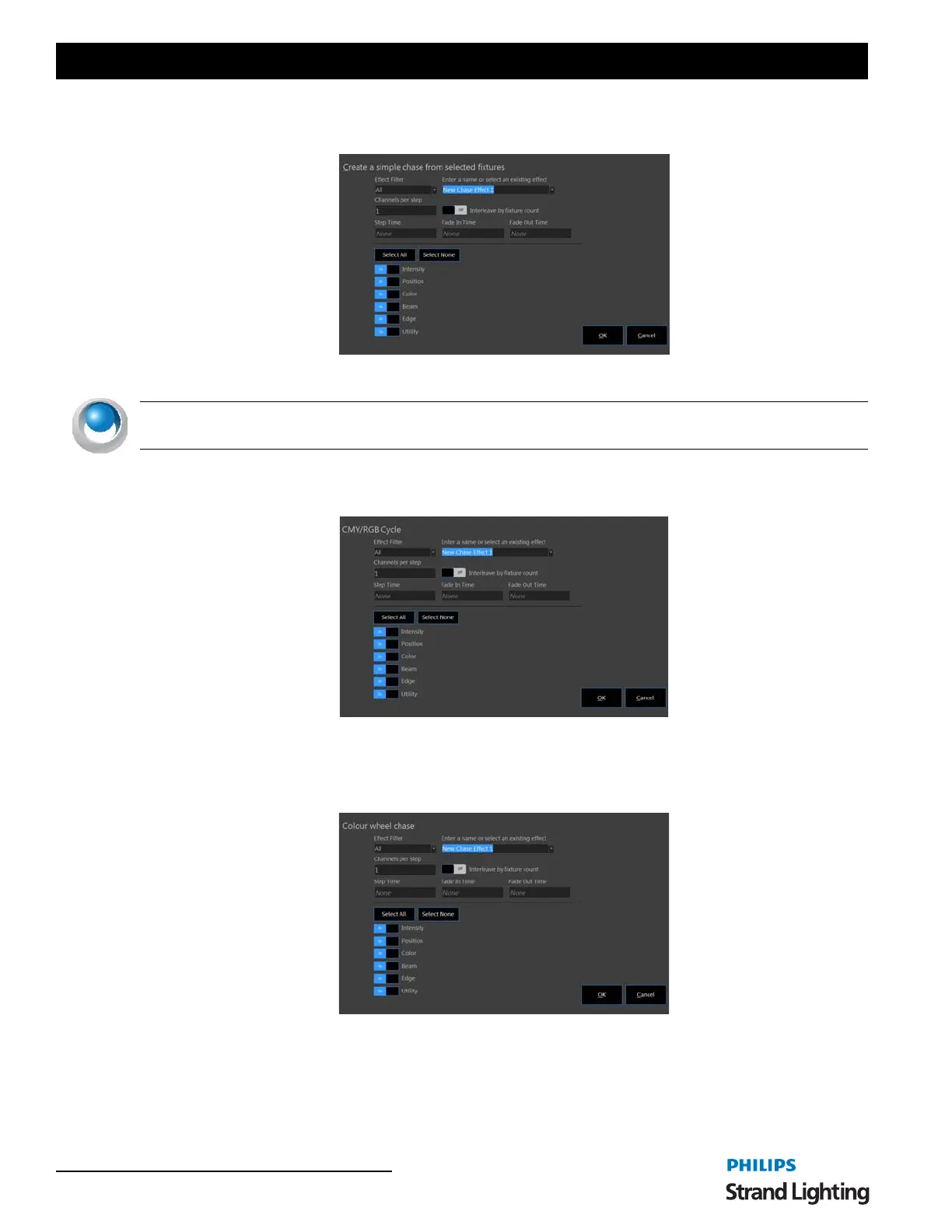 Create a simple chase from selected fixtures - creates a traditional chase effect based on the selected fixtures. Each
