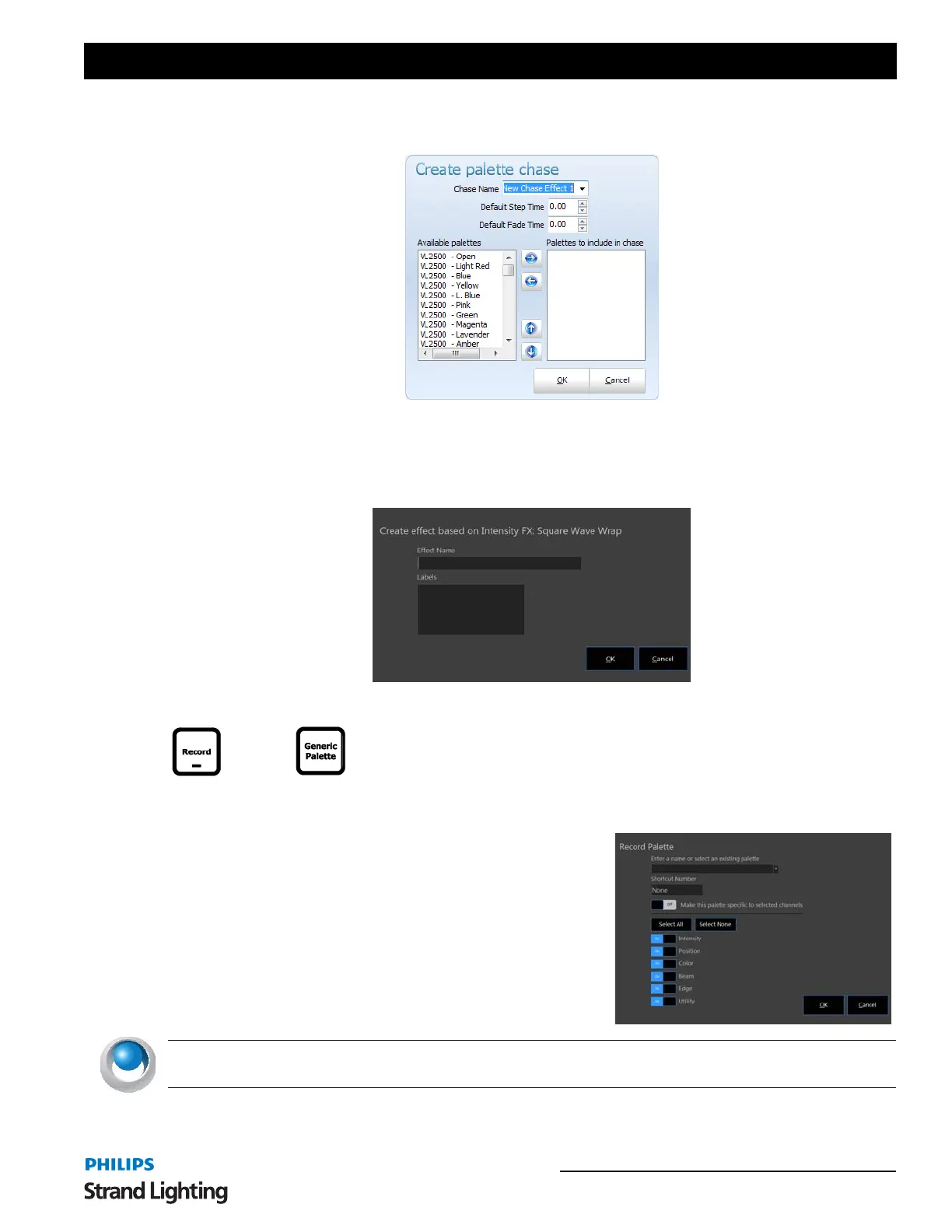 Record Palette - activates the Record Palette dialogue box in order to facilitate creating a Generic Palette.