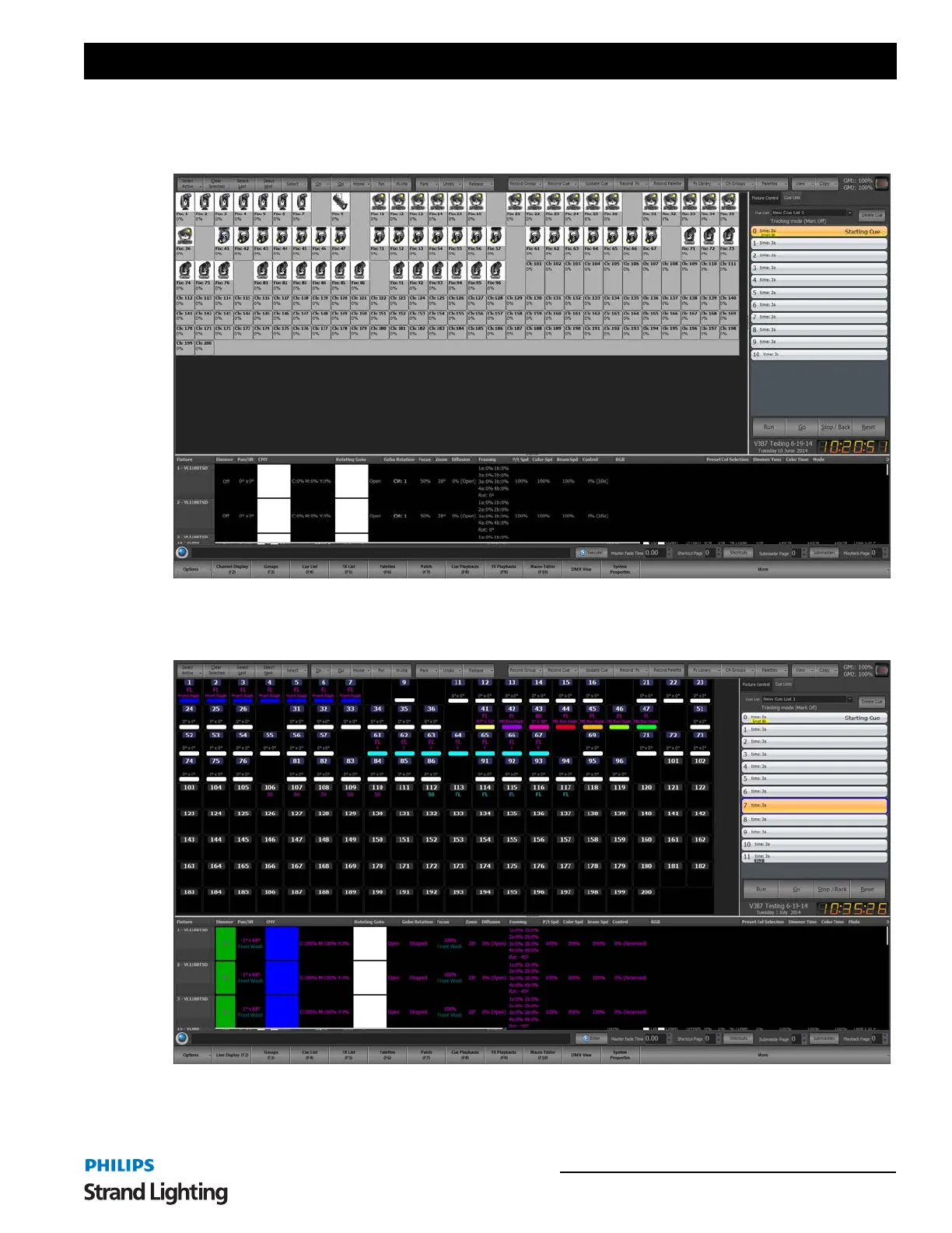 show the least amount of information per fixture and is limited to the basic channel number and dimmer level. It will