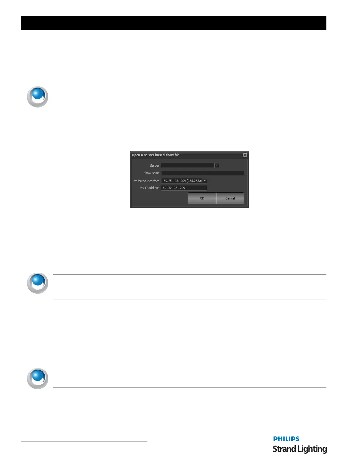 connect in the same way. If you open the show file using the regular "Open saved show" then the server will not be
