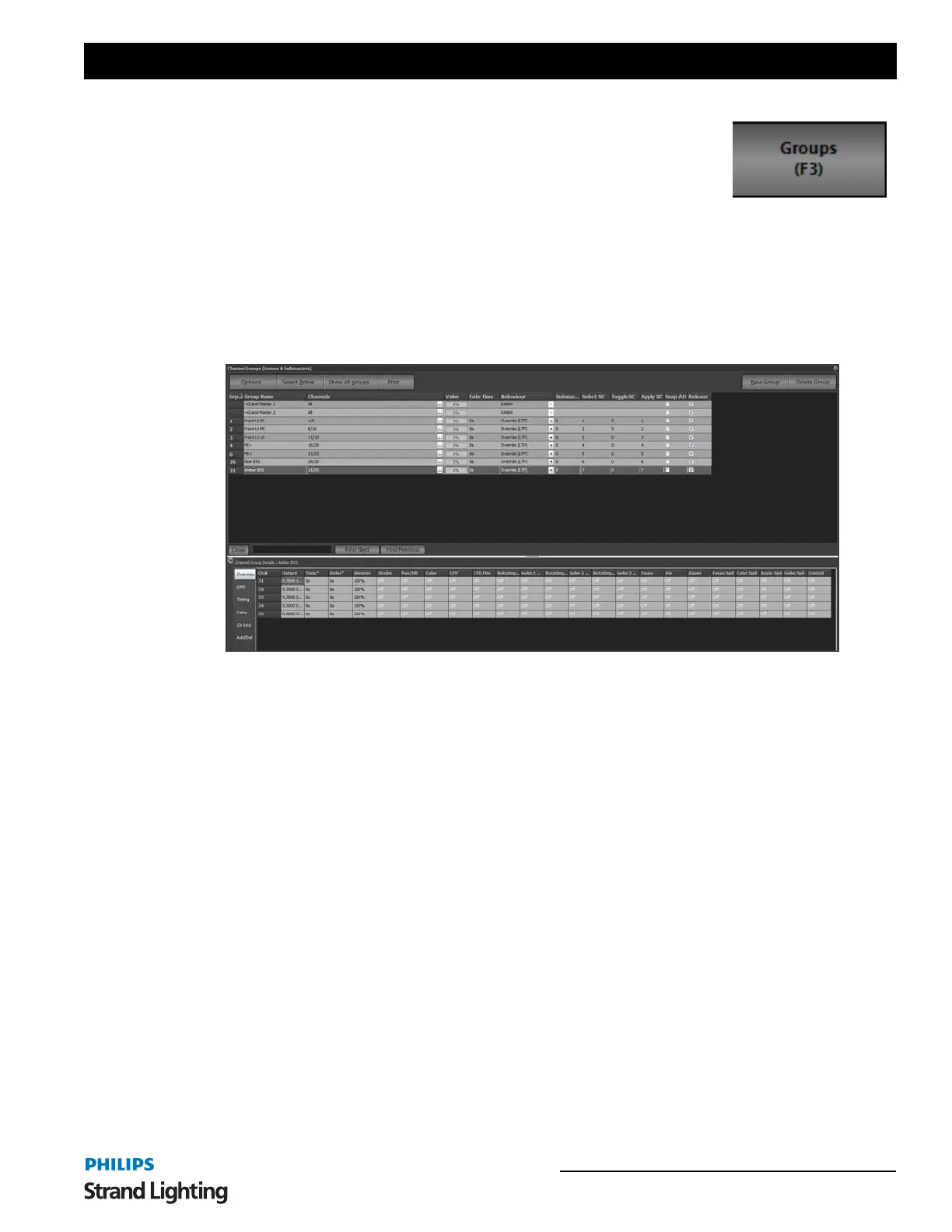 Channel groups can also be used to aid with selecting fixtures in the channel display. By assigning a selection