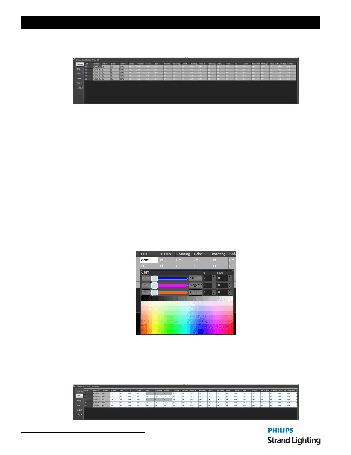 information but some values may show other data. A gobo control for example will show an image of the gobo
