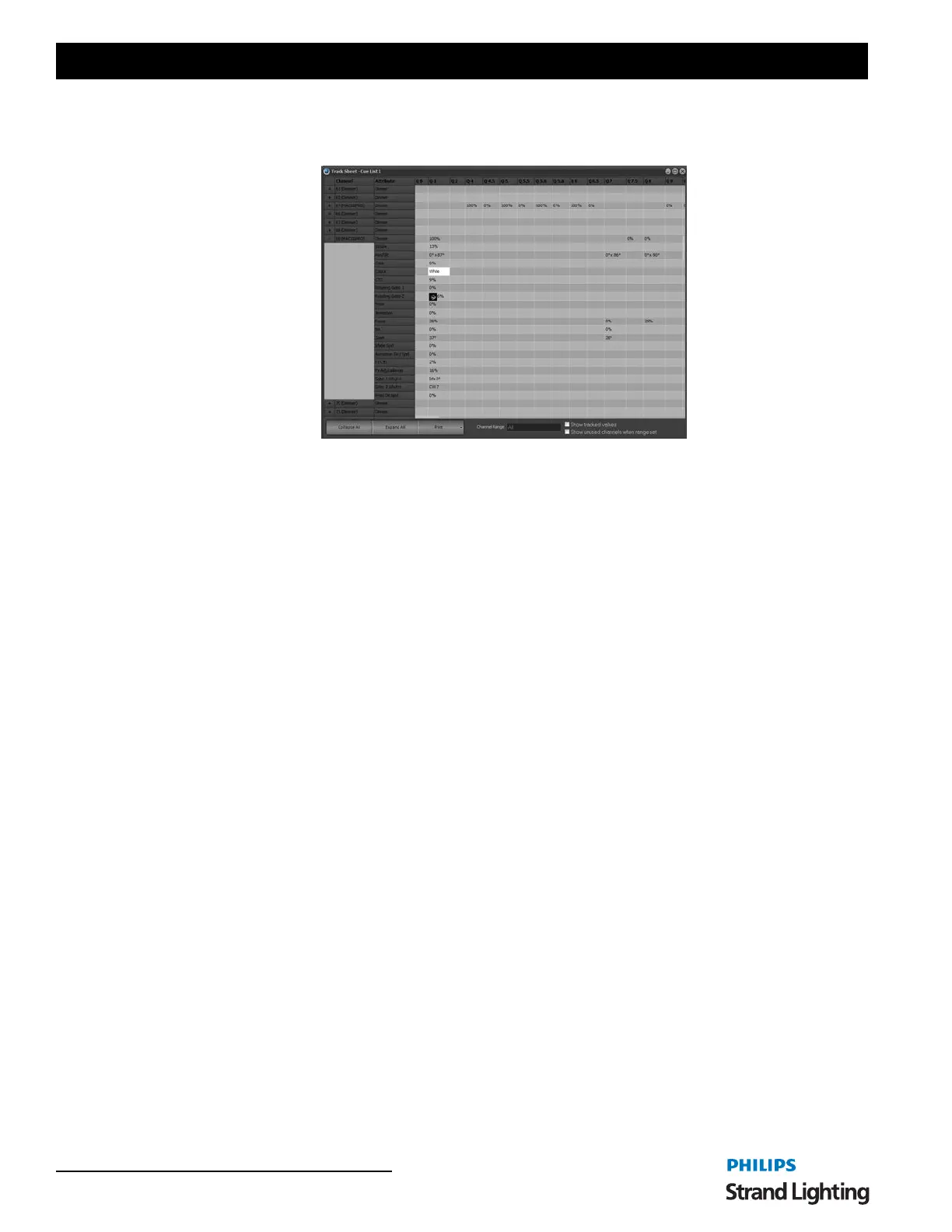 list. By default the track sheet will only display the channels that are used in the cue list to help minimize the
