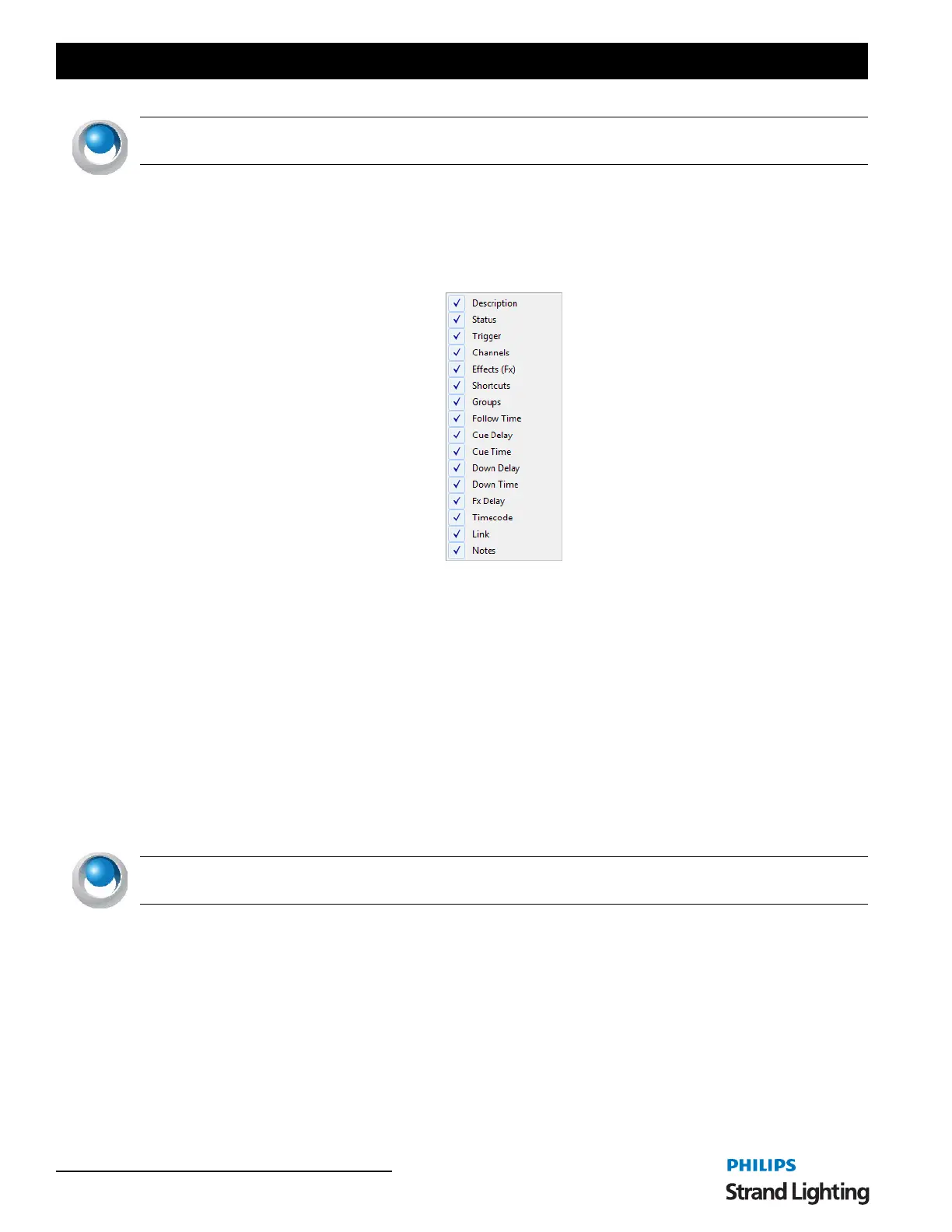 cue list the currently active cue list. If a cue within this cue list is active then it will appear highlighted light green.