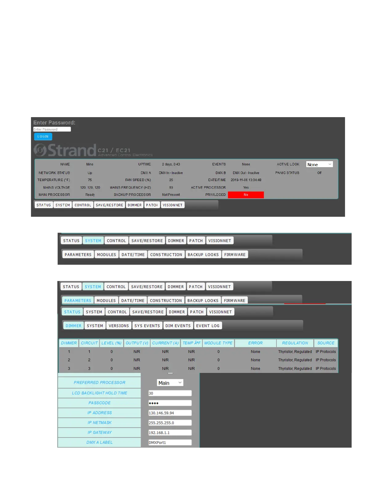 Strand C21 - System Interface and Dimmer Management; System Status and Parameters