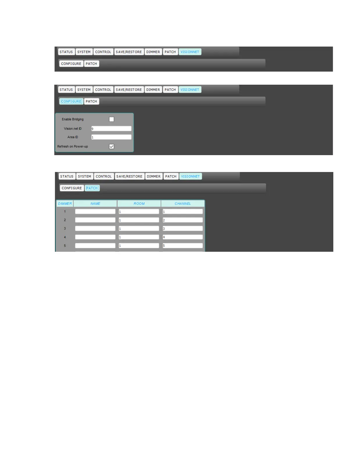 Strand C21 - Vision.Net Configuration; Vision.Net System Settings; Vision.Net Dimmer Patching