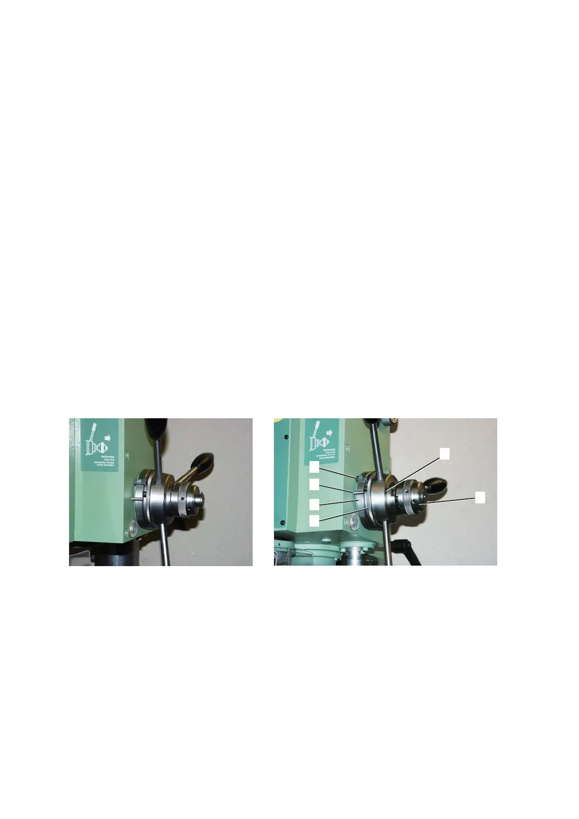 Justeringen sker enligt ovan, men axelmuttern dras moturs. Vid för högt borrtryck fungerar