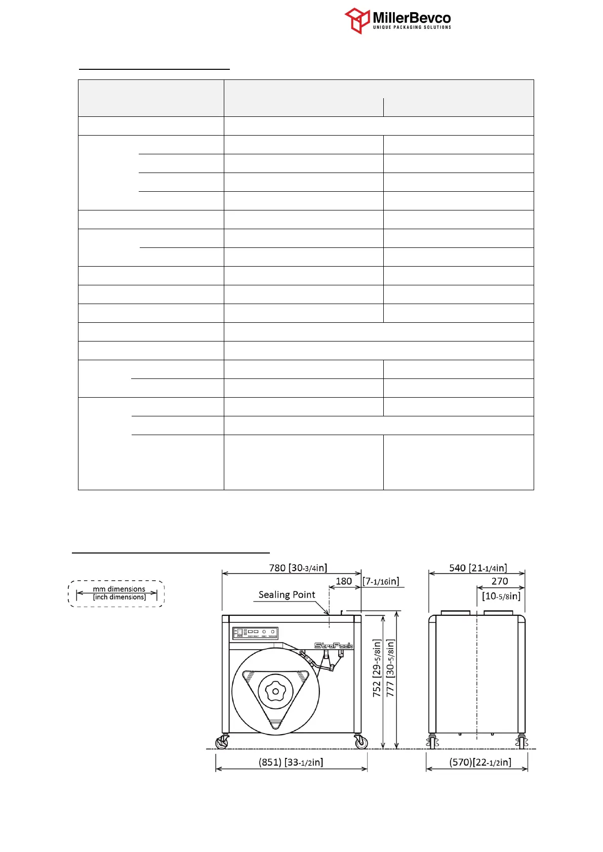 Strapack iQ400 - StraPack iQ-400 Standard Specifications; StraPack iQ-400 Dimensional Outline Drawing