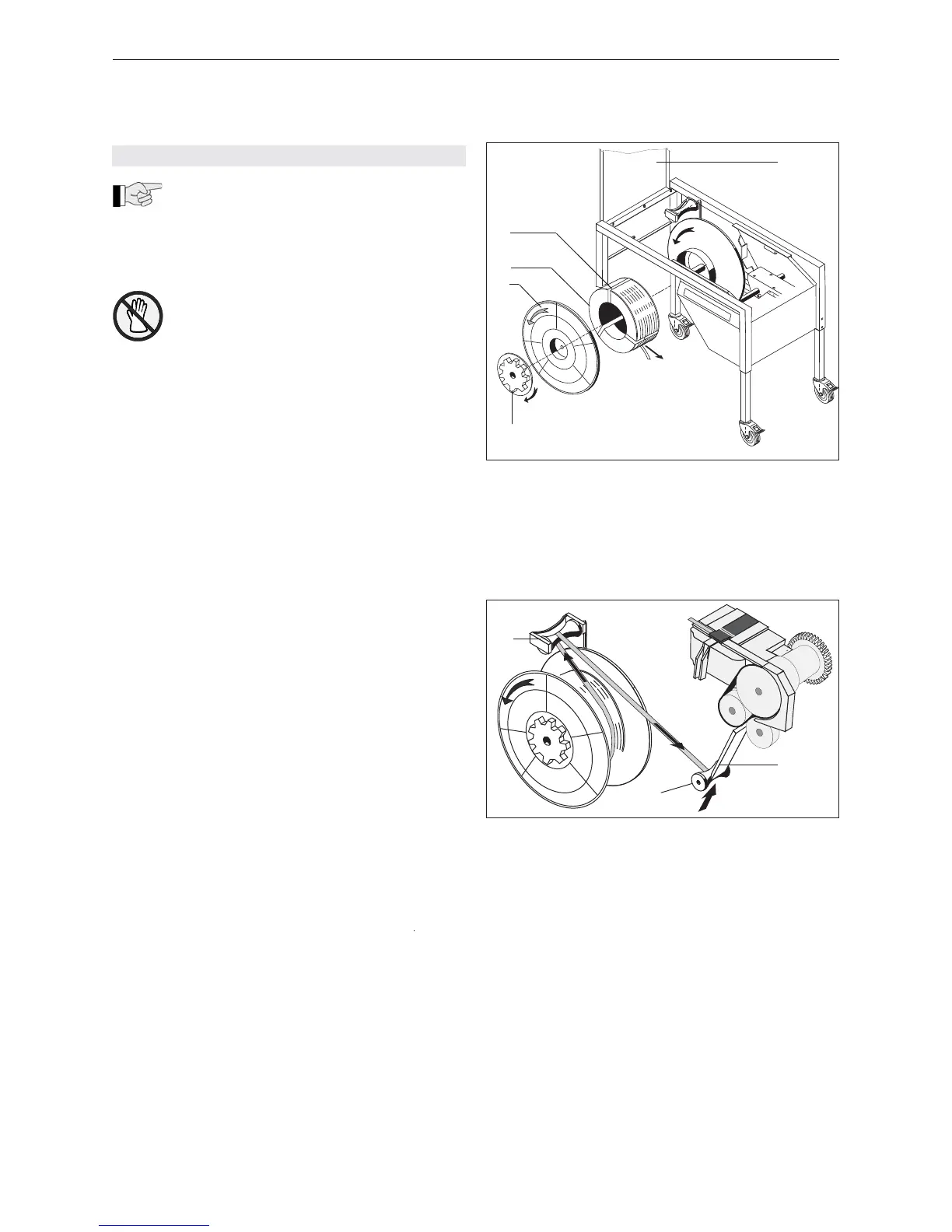 – Band von Hand in die Bandführung (7/1) vorschie-