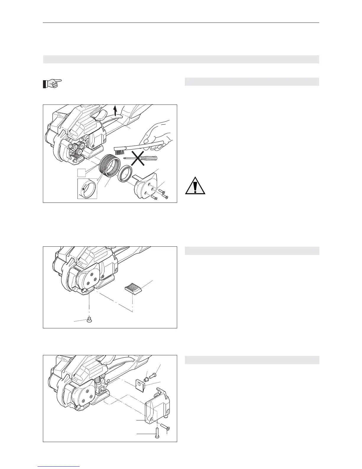 – Spannrad mit Druckluft reinigen (Schutzbrille tra-