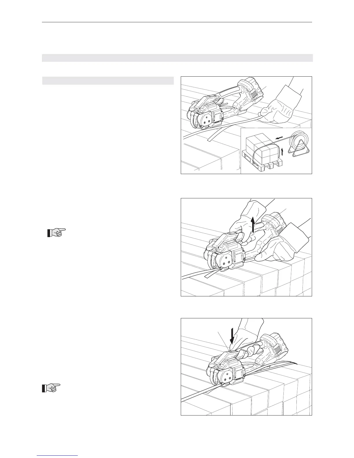 – Place strap round goods to be packaged, so that