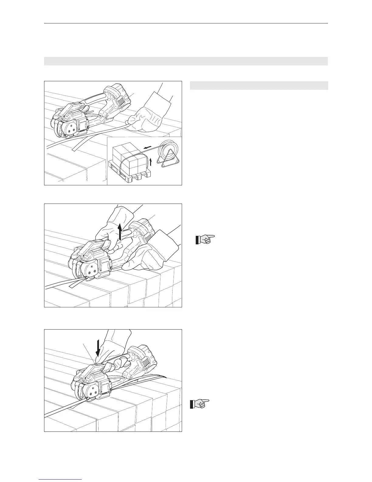 – Drucktaste (9/1) betätigen. Band wird gespannt,